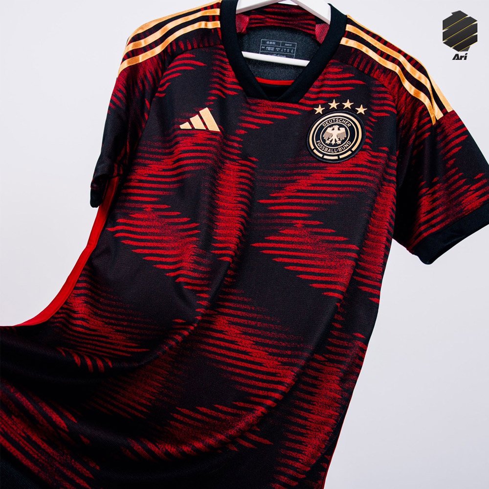 The away kits come in red, inspired by the 2014 World Cup, where Germany clinched the fourth World Cup title, donning jerseys that featured the flag's colors and the letter D, which represents Deutschland as an epitome of their dynamic playing styles.
