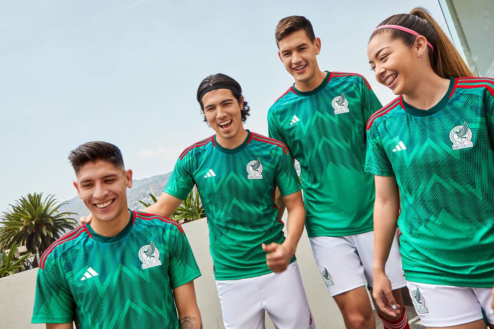 Mexico is kitted out in head-turning jerseys, as expected. The home kits are in green with a pattern that pays homage to deep-rooted Mexican culture to offer a nod to the nation.