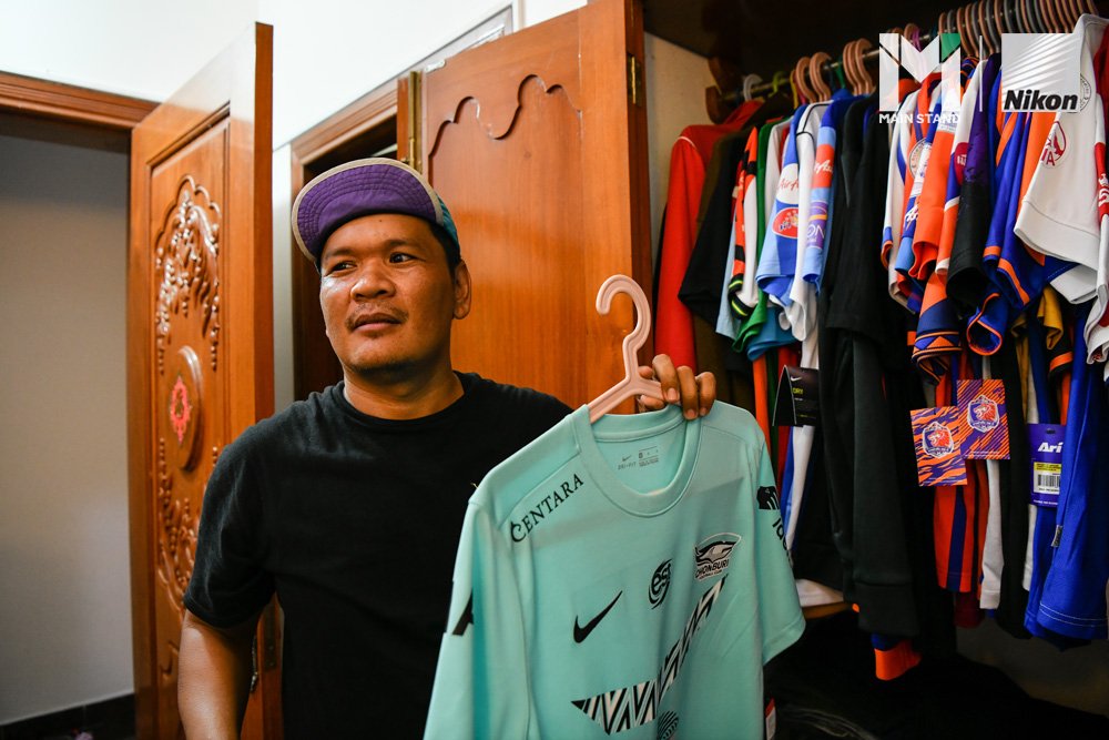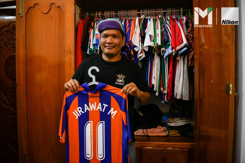 “เสื้อทีมผมซื้อมาต้องใส่ไม้แขวนแบบนี้เพราะว่าเสื้อพวกนี้มีความพิเศษสำหรับผม มันเป็นเสื้อสะสมของผมด้วย รวม ๆ แล้วเสื้อของผมมีเกือบ 50 ตัวเลย บางตัวผมซื้อมาไม่ได้ใส่นะ เก็บใส่ตู้อย่างเดียว จนต้องย้ายชุดของภรรยาเข้าไปแขวนราวเสื้อในห้องน้ำเพราะว่าตู้ใส่ไม่พอ”