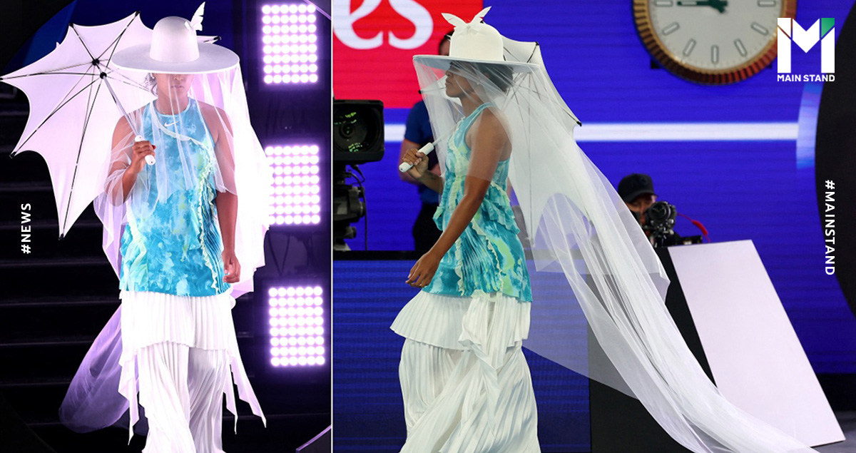 นักหวดหญิงชาวญี่ปุ่น ปรากฏตัวที่ ร็อด เลเวอร์ อารีน่า พร้อมกับชุดเดรสสีฟ้าอ่อน พร้อมร่มและผ้าคลุมศีรษะสีขาวที่ยาวและโดดเด่นแบบสะดุดตาทุกคน ซึ่งหลังเอาชนะคู่แข่งได้ เธอก็เปิดเผยถึงที่มาของชุดแข่งตัวพิเศษ ที่เธอออกแบบร่วมกับ ไนกี้ สปอนเซอร์ของตัวเอง